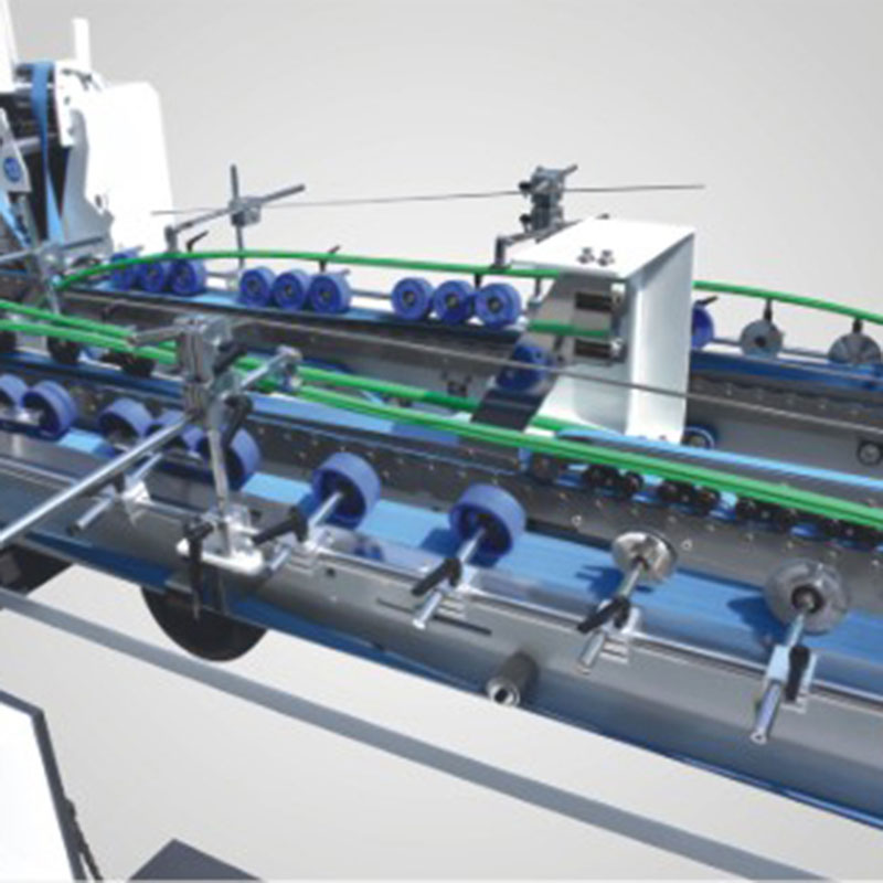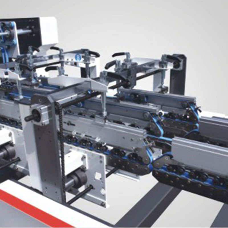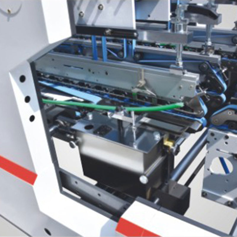 बोर्ड ट्रॅकिंग स्ट्रक्चर, अप्पर ग्लूअर तळाशी-लॉक केलेला बॉक्स स्वयंचलित ग्लूइंग आणि फॉर्मिंग बनवू शकतो.